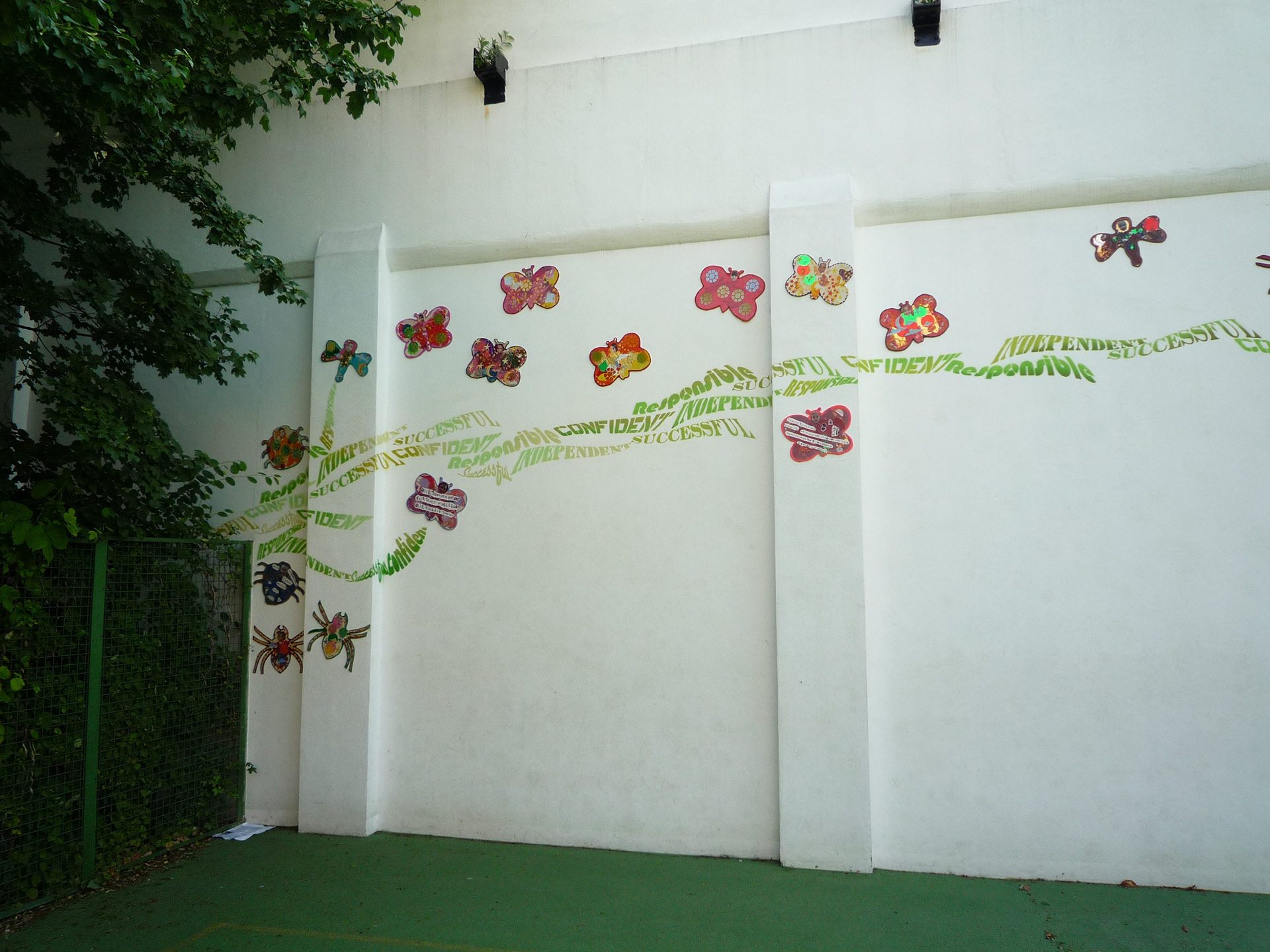 Oxford Gardens Primary School Sports Pitch mural - Primary School mural involving entire school and various artforms