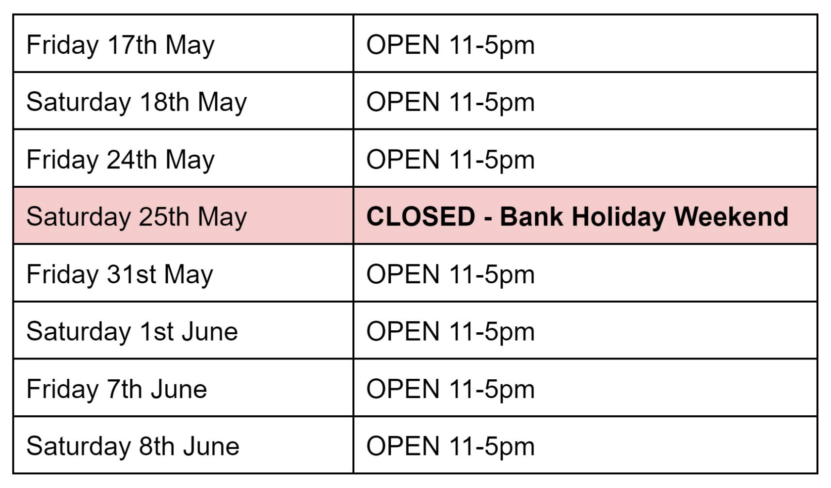Gallery Opening Times